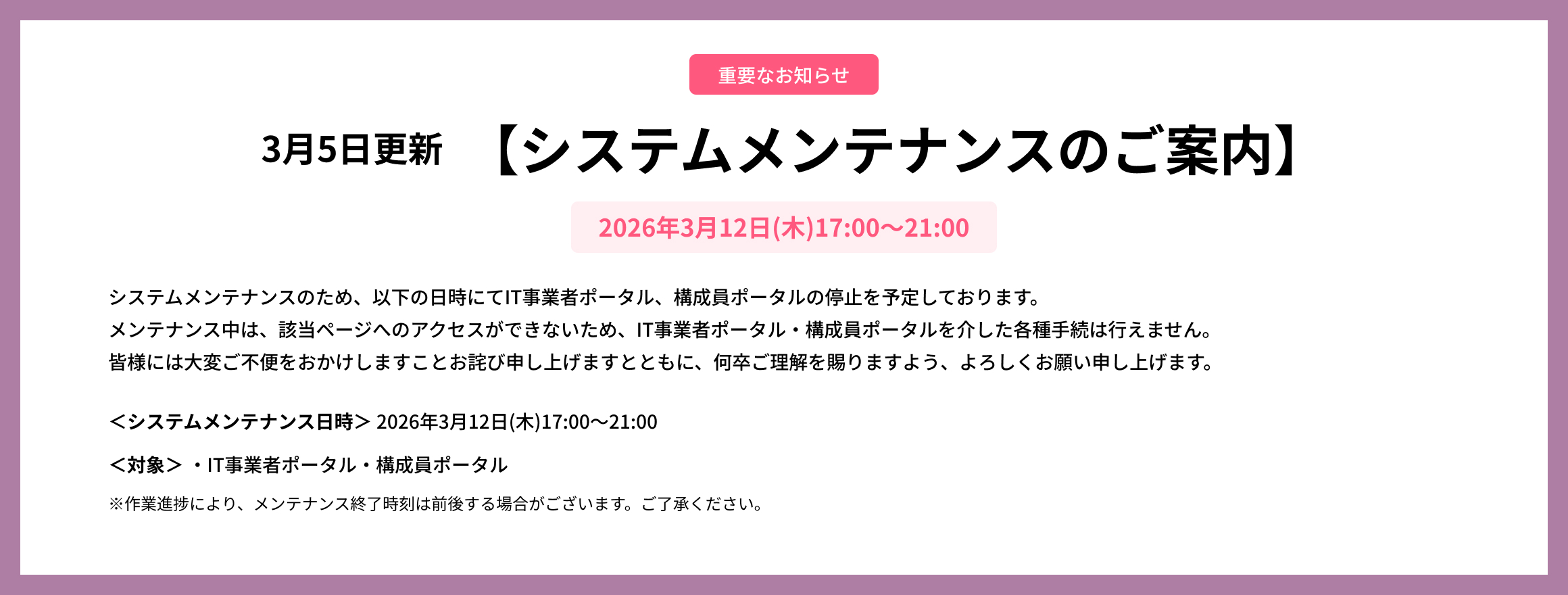1月7日更新 IT導入補助金2025における公募は終了いたしました