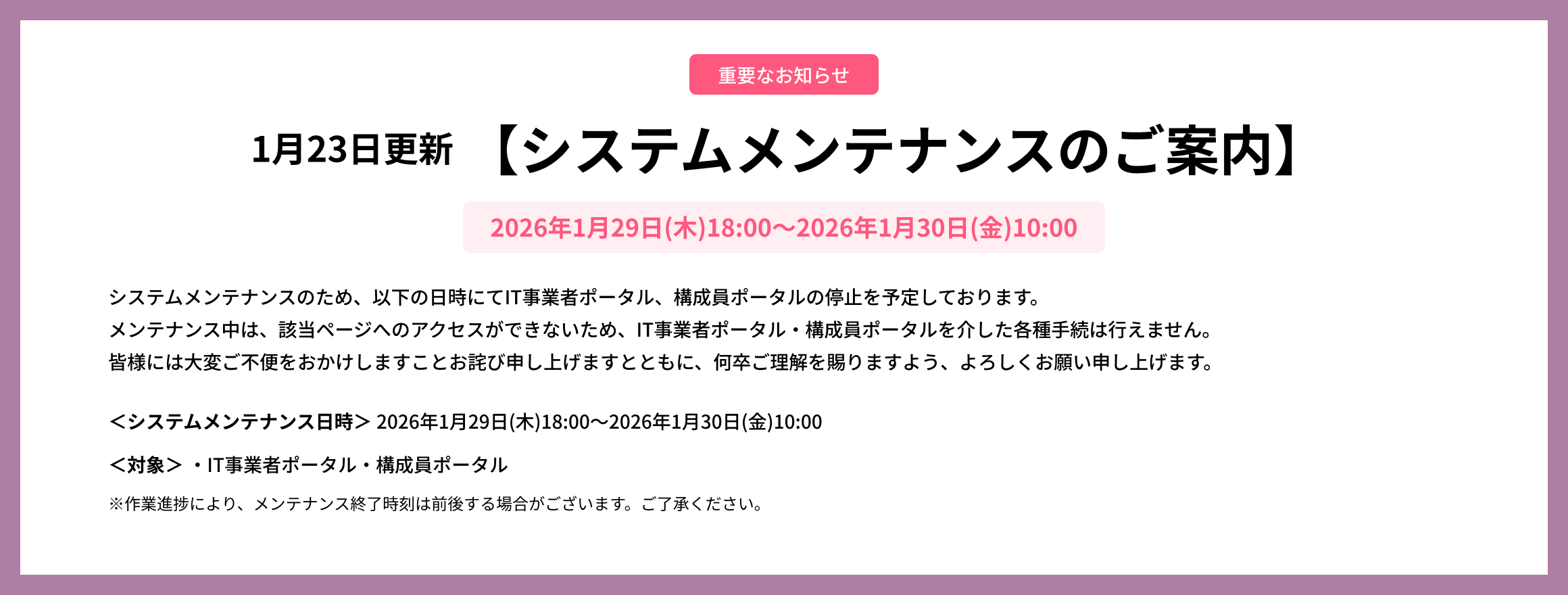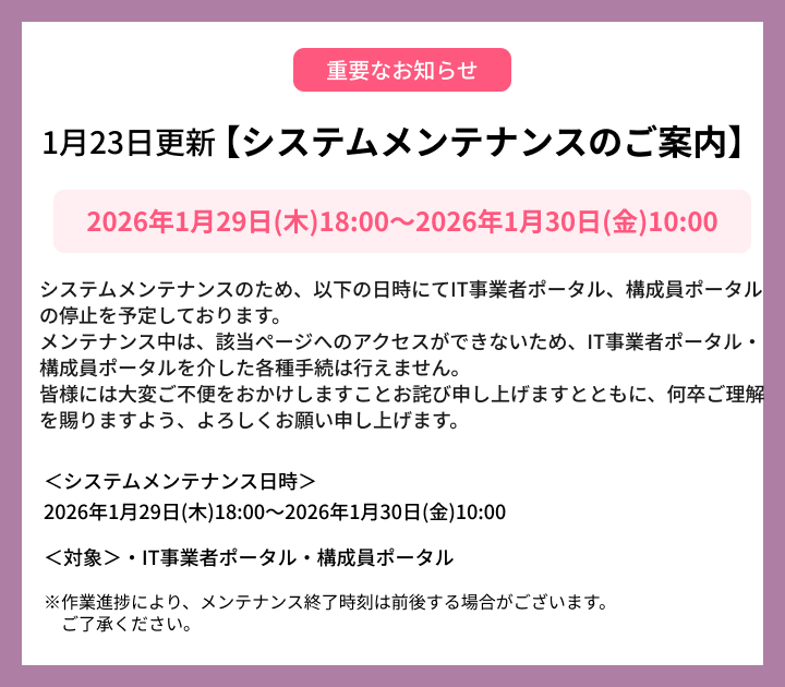 1月7日更新 IT導入補助金2025における公募は終了いたしました