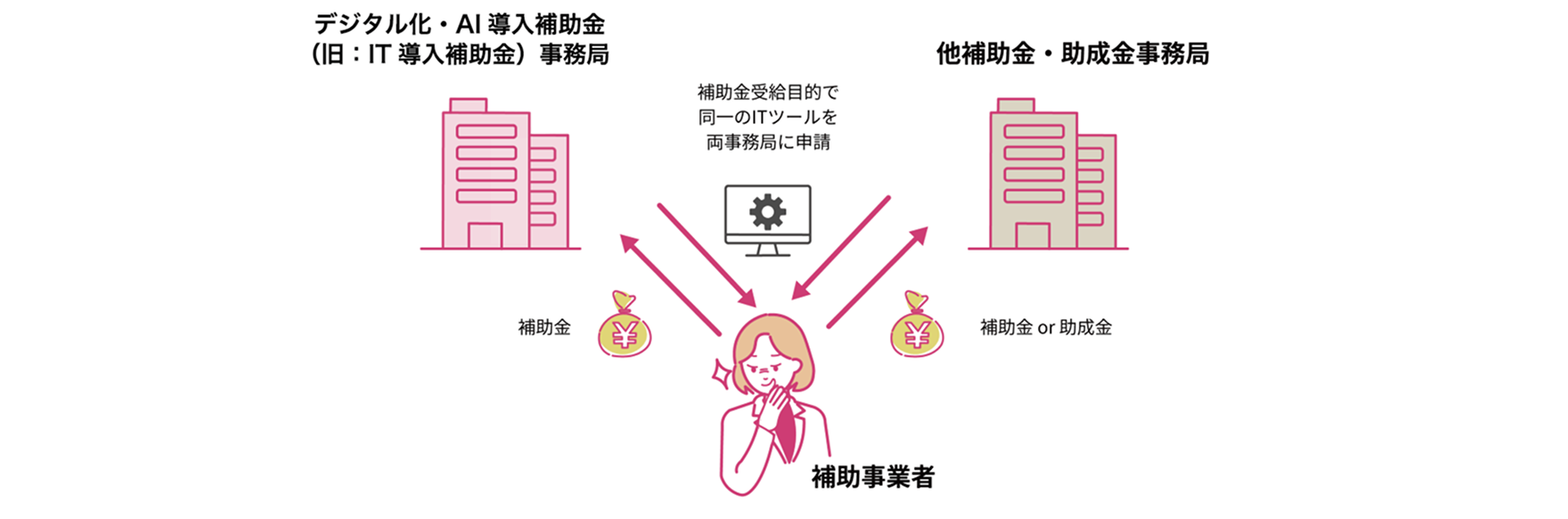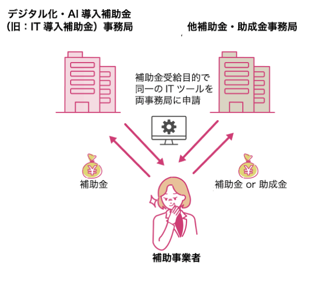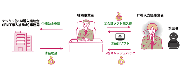 デジタル化・AI導入補助金(旧:IT導入補助金)において、以下の行為はすべて不正であり、犯罪です。不正行為と判断した場合、交付決定取消、補助金の返還請求、IT導入支援事業者登録取消を行います。